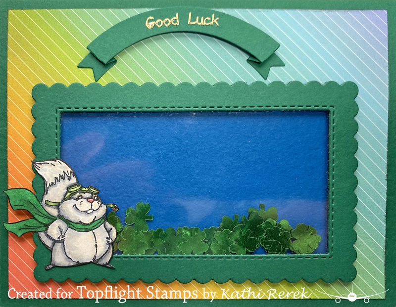 - Stamp the sentiment onto black cardstock with VersaMark ink. Heat emboss with Brass embossing powder.